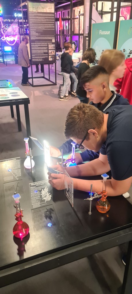 Voller Stolz und Begeisterung stellen die Schülerinnen und Schüler der 1. MINT Klasse ihre Experimente und Versuche in den Bereichen Mathematik, Informatik, Naturwissenschaft und Technik vor.