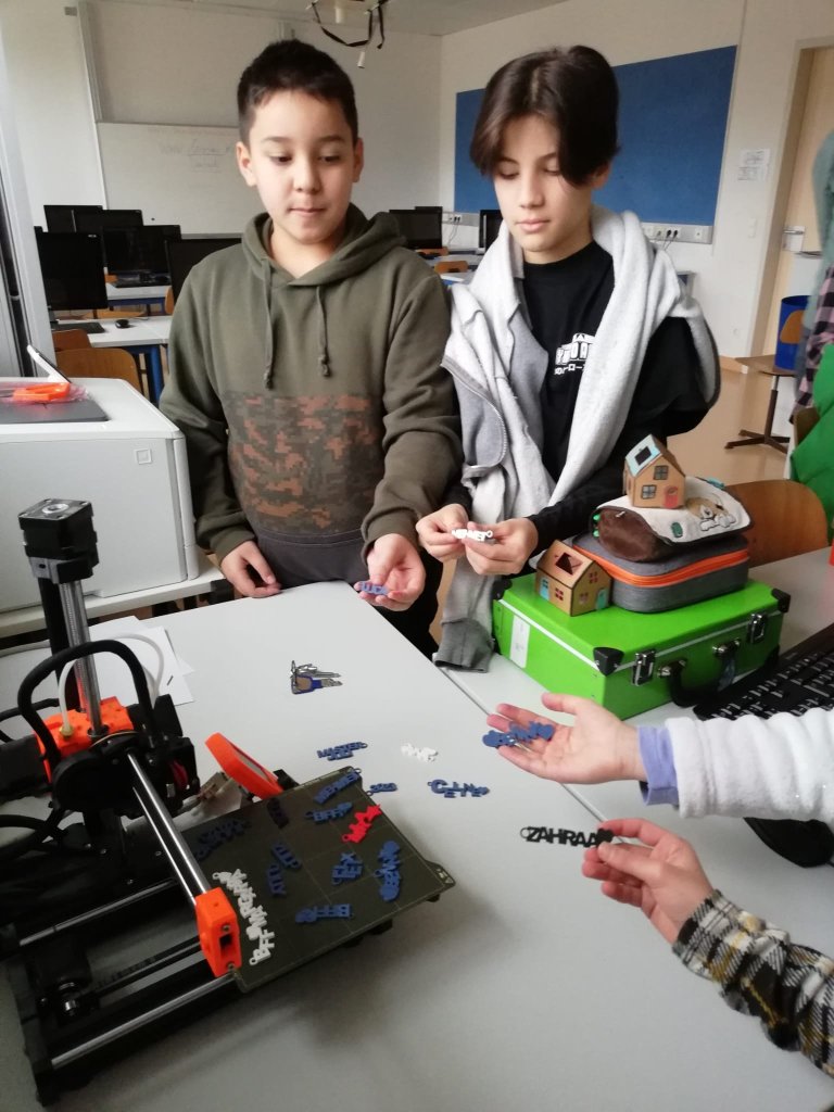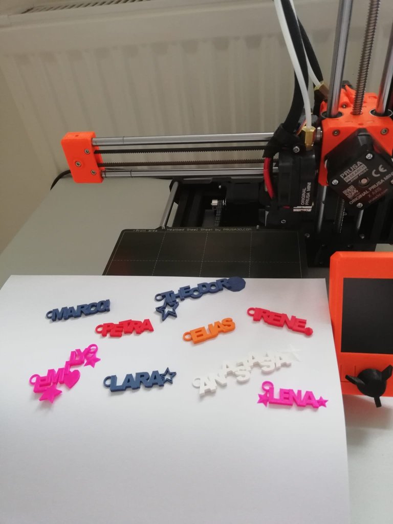 Im Zuge der Nahtstellenarbeit waren auch 60 Volkschulkinder (beide 4. Klassen und aus der VS Judenau- Baumgarten und 30 Schüler:innen der 4. Klassen der VS Sieghartskirchen) zu dem Projekt eingeladen. Sie hatten auch die Möglichkeit sich mit dem Thema 3D-Druck auseinanderzusetzen. Mit Hilfe des Online-Tools Tinkercad durften sie personalisierte Schlüsselanhänger entwerfen. Diese wurden in weiterer Folge mit dem neuen 3D-Drucker der Schule hergestellt. Die Ergebnisse können sich sehen lassen.