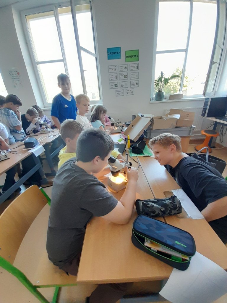 Anschließend wurden die ersten Versuche beim Mikroskopieren getätigt und Forscherregeln