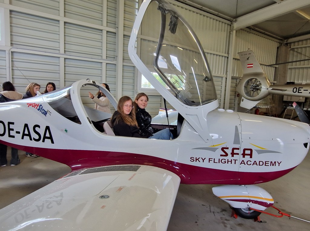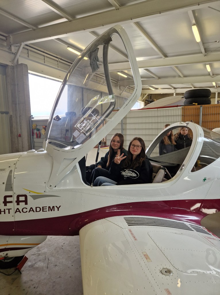 Zuerst erzählte uns die Miteigentümerin und Co-Pilotin der Flugschule viele interessante Geschichten über diese Flugschule und über den Beruf einer Pilotin.