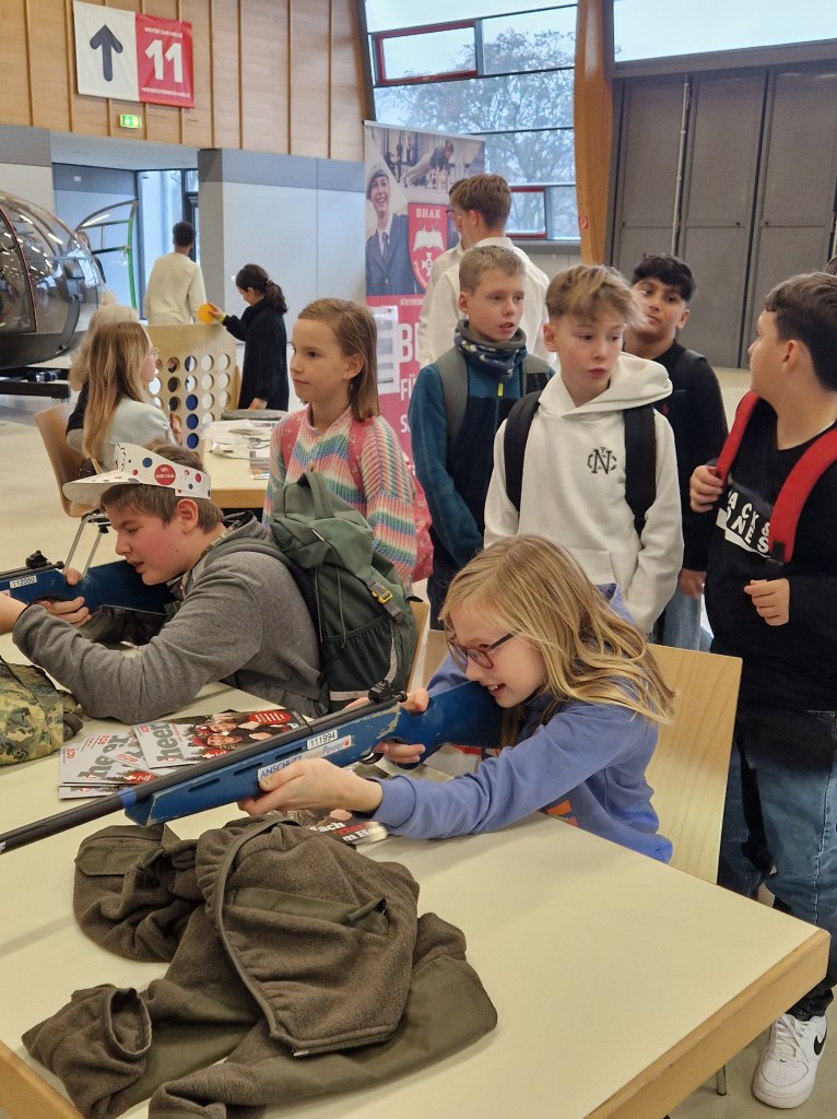 Dort bekamen die Jugendlichen Einblicke in verschiedene Bereiche des Arbeits-, Schul- und Freizeitlebens. Die Messe bildet einen Mix aus Spaß und Information über Weiterführende Schulen, Lehrbetriebe und Fachgewerkschaften.